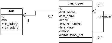 2.3 Abfragebeschleunigung durch Batch_Fetch_Size und JOIN FETCHNehmen wir folgenden Ausschnitt aus einem Modell und eine Abfrage darauf, die Angestellte einschliesslich ihrer Job-Bezeichnung anlistet.