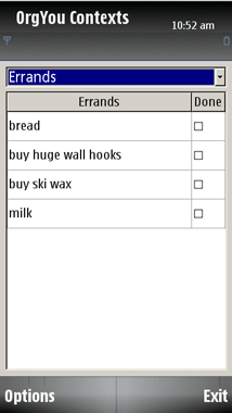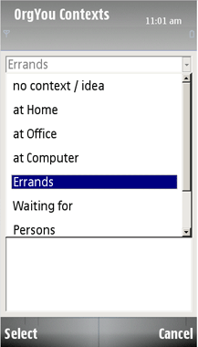 in a combobox. If you select a context, e.g. "Errands", you see all next actions